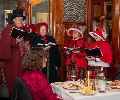 Right out of a Dickens novel. Vintage Victorian carolers in traditional attire spend two hours singing your favorite Christmas carols while you dine. Expect rousing carols, exquisite festive décor and a dining experience shaped by generosity. Join us for dinner, a little sparkle, and a lot of holiday joy.
